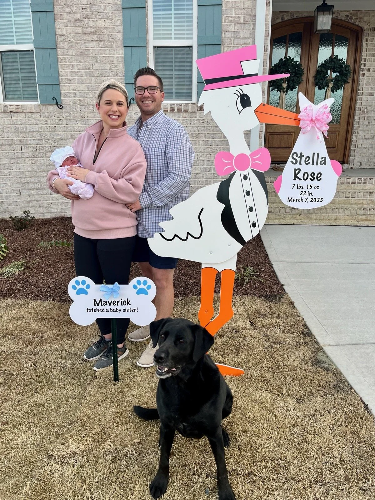 Our dog bone add-on signs are the perfect special touch for a fur-baby loving family. Auntie Jules Storks is a stork yard sign rental service located in Johnston County, NC. The birth of a baby is the most memorable and unforgettable moment of a family’s life. Let us help you celebrate! Our 6-foot tall stork signs are perfect for birth announcements, adoptions, pregnancy announcements, baby showers, and gender reveal parties.